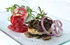 Lokalisert nært Finnmarksvidda og reinens rike, er reinhjerte (bildet) en selvfølge på forrettmenyen. Etter tre timers salting, deles hjertet opp i tynne skiver og stekes i pannen med fersk timian. Som tilbehør brukes en noe spesiell tyttebær - tilsatt en dash Jägermeister.