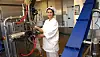 - I den store og automatiserte kjelen som varmes opp med steam, kan vi i løpet av en dag for eksempel lage 4000 porsjoner med saus eller 600 liter lapskaus i løpet av en time. I kjelen lager vi alt som er sammenkokt, som supper, sauser, stuinger eller lapskaus. Maten kokes på 90 grader og føres deretter gjennom et system til pakkestasjonen der den pakkes og klipses. Her foretar vi også jevnlige kontroller og smaksprøver på innholdet. Deretter legges den direkte på transportbåndet som fører inn i avkjølingstanken, der temperaturen på maten senkes fra 75-80 grader til fire grader på om lag en time. Alle produserte varer legges så i kasser og blir kjørt på lagring/kjøl, der temperaturen skal være nærmest mulig 0 grader, forteller produksjonsleder Hege Eftedal.