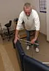 - Vi har knyttet til oss bindevevsterapeut Marianne Persen, og samtidig kjøpte vi en sammenleggbar massasjebenk, som alltid er tilgjengelig på dette møterommet. Den ansatte og bedriften betaler halvparten hver for tre kvarters behandling, forteller Arnesen.