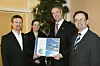 Stiftelsens markedsansvarlig, Tormod Lien, overrakte svanelisensen til hotelldirektør Frank N. Eikeland i forbindelse med de ansattes julelunsj ved Rica Victoria Hotel i Oslo.