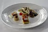 * byggrisotto i syltelake og kongekrabbe i potetkake i lag med tomat og dill.