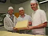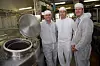 Produksjonsdirektør Øyvind Berg (midten) og produksjonsplanlegger Per Einar Moheim i Synnøve Finden sammen med Jonas W. Andersen (til venstre) i Haugen-Gruppen. (Foto: Morten Holt)