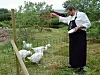 Atle Tilrem mater endene på gården. (Foto: Heidi Fjelland)