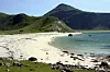 Du kan finne idylliske strender i Norge også, selv om badetemperaturen ikke alltid er den samme som på sydligere breddegrader. Her fra Haukelandstranden i Lofoten. (Foto: Morten Holt)