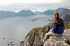 Fjell og fjord fascinerer også nordmenn. Her fra Festvågtind i Lofoten. (Foto: Morten Holt)