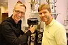 Ole J. Sønstebø (t.v.) fra Norsk Kaffeinformasjon og Axel Martinussen, i Coca-Cola foran en av de godkjente kaffetrakterne som Coca-Cola pålegger kundene sine å bruke. (Foto: Cato Gjertsen)