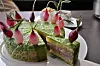 Fårikål på en annerledes måte. Tom-Victor Gausdal ga fårikål en ny mening på Matkulturdagen. Han serverte dampet lammebryst innpakket i smaksrik kål som en kake (Foto: Stiftelsen Matkultur).