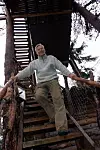 - Den første tretopphytta var på en måte et prøveprosjekt, som har vist seg å fungere. Trær er jo alltid i bevegelse, og vi måtte bygge den med en kombinasjon av faste punkter og glideflater.