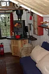 Inne er det både gassovn og egen peisovn som sørger for varmen på kalde vinterdager.