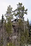 Hva med en overnatting i trekronene åtte meter over bakken, i en hytte festet i fire 2-300 år gamle, kraftige og store furuer.