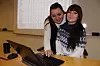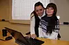 Lana Stock (t.v.) og Silje Kjellmo Johansen studerer begge bachelor i hotelladministrasjon. Til våren er de ferdige med studiene. Nå har de lært å bruke hotelladministrasjonsverktøyet PMI og dette gir dem et fortrinn når de til våren skal søke på jobber. Kursing i PMI tilbys kun ved Høgskolen i Finnmark. (Foto: Inger Elin Utsi)