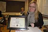 Charlotte Hustad fra Breivikbotn viser stolt fram diplomet som beviser at hun har fullført og bestått PMI-opplæring. Hun sier at det er vanskelig å få jobb innen hotelladministrasjon, derfor kan det være en fordel å ha dette i CV-en når hun skal ut i arbeidsmarkedet. (Foto: Inger Elin Utsi)