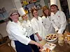 Sterkt tverrfaglig team på kjøkkenet, fra v. Grethe Simonsen, og Eva Erichsen – begge med stillingsbetegnelsen fagarbeider (kokk), overlege Helene Lindvik, ass. avdelingssykepleier Hilde Mogan og Elin Torgersen, leder for matverter og diettkjøkken. Teamet innbefatter også en ernæringsfysiolog. (Foto: Odd H. Vanebo