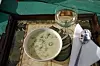 På gode sommerdager nyter gjestene suppa, som selges for rundt 90 kroner, på uteserveringen utenfor landhandelen.