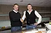 Fusjonskameratene Ole Henrik Eftedal (t.v.) og Raymond Wiig ble fort skjønt enige, og greide å få 60 medarbeidere til å holde kjeft inntil nyheten kunne slippes. (Foto: Odd H. Vanebo)