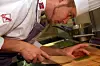 Mats Lambrechts Valuen arbeider til daglig hos Jørn Lie på Gamle Raadhus i Oslo. Denne uka prøver han seg i NM i kokkekunst 2010 i Trondheim. Her arbeider han med salmalaksen. (Foto: Morten Holt)