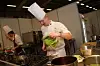 Stig Harris Fagerholt i dyp konsentrasjon under den første dagen av NM i kokkekunst i Trondheim. (Foto: Morten Holt)