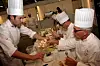 Juryen i NM i kokkekunst 2010. Fra høyre Jacob H. Magnusson, Jan Kåre Johansen, Harald Osa, Sven Erik Renaa og Håvard Ravn Larsen. I bakgrunnen arbeider Leif Erik Karlsen i boks 1. (Foto: Morten Holt)