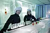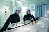 – De som begynner å jobbe i isbaren klokken to er inne i tre kvarter. Deretter har de et kvarters pause og kan gå ut i den varme delen. Etter totalt tre timer i den kalde delen bytter de med dem som jobber i butikken og den varme baren, sier lederen.