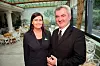 Resepsjonist Carola Marzorati og hotelldirektør Paolo Fortina i den vakre vinterhagen på Grand Hotel Bristol i Stresa. (Foto: Morten Holt)