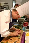 Hallvar Ellingsen arbeider konsentrert under NM i kokkekunst 2010. (Foto: Morten Holt)