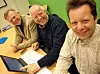 Gyver løs på oppgaven med å arrangere NM i oppvask med friskt mot. Nærmest Steinar Stensson, i midten Bjørn Arild Eliassen – henholdsvis salgssjef kompetanse og teknisk sjef HRG i Lilleborg Profesjonell AS, med Arne Dalseng, daglig leder i BFSN, bak. (Foto: Odd H. Vanebo)