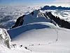Utsikt fra Mont Blanc. Chamonix ligger i dalen til venstre - under skylaget. (Foto: Morten Holt)