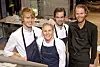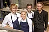 Gjengen på Brygga 11: Geir Skeie (fra venstre), Katrine Borg Larsen (vertinne/dessertsjef), Viktor Redin Lindberg (kjøkkensjef) og Ole Johan Horntvedt (restaurantsjef).