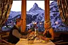 Fra restauranten på hotellet er det ikke noe å si på utsikten mot Matterhorn. Samtidig har du Zermatt under deg. (Foto: Hotellet)