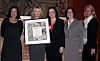 Miljøgruppa i Thon Hotels har mottatt sertifikatet fra Libe Riber-Mohn (til venstre). Videre Merete Alfstad, Toril Myro, Camilla Røstad og Eva Knoph. (Foto: Thon Hotels)