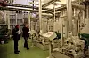 Daglig leder for Mosseporten Miljøenergi, Audun Amundsen motoren med 24 sylindre som sørger for elektrisitet til frysemaskinene i lageret. (Foto: Morten Holt)