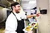 Når maten er klar for servering, kan kjøkkenet kalle opp servitøren via en personsøker, som vibrerer ganske svakt.