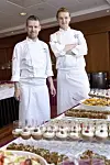 Kjøkkensjefene Henrik Svendsen ved Radisson Blu Royal Garden, og Hans Johan Frøset ved Radisson Blu Hotel Trondheim Airport har vært med å tilpasse matkonseptet Brain Food i Trøndelag. (Foto: Nina Mørk)