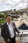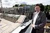 Markedssjef i Aspelin Ramm, Frode Rønne Malmo, foran Mathallen, som nå er under oppføring. I bakgrunnen bygges PS Hotel og Scandic Vulkan, som begge åpnes til høsten (Foto: Morten Holt)