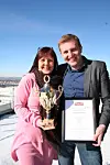 Kjedesjef Stig Seljeseth og salgskonsulent Vigdis Håkensen gleder seg over utmerkelsen fra Storcash.