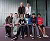 Hotelldirektør Ulrika Andersson (bak til høyre) sammen med skatere under åpningen av Park Inn Malmö.