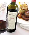 Lett avkjølt Jacob’s Creek Reserve Cabernet Sauvignon. Duft av mynte, bjørnebær og solbær med hint av krydret eik. Sjenerøs smak av modne solbær med hint av sorte oliven. Velintegrert eikepreg med en lang og bløt avslutning