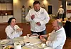 Jury i arbeid i NM i kjøttprodukter 2012. Fra venstre Janne Haugdal (Allimenta), Bjørn Tore Teigen (MatPrat) og Ola Stuberg (Arne B. Corneliussen). (Foto: Svein-Erik Eide, KLF)