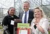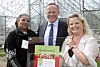 Daglig leder Ann Kristin Hatletvedt (til høyre) i Klepp Frivilligsentral og Salwa Idris Yahye mottok prisen på vegne av Frivilligsentralen. Her sammen med Landbruks- og matminister Lars Peder Brekk. (Foto: Flemming Støldal)