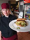 Den som vil smake en autentisk nordnorsk fiskeburger, skal dra innom Fiskehallen i Narvik, hvor den nye kaféeieren Elisabeth Holsen serverer godbiten. (Foto: Odd Henrik Vanebo)