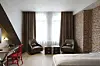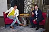 Nordic Choice-eier Petter A. Stordalen og hotelldirektør Olav Langli har tatt plass på ett av de mange rommene som ikke ser helt ut som andre hotellrom. (Foto: Georg Mathisen)