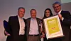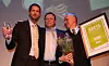 Haugen-Gruppen ble Årets leverandør innenfor servicehandel, og fikk også prisen for Årets produkt. Jan Arstad fra NorgesGruppen (i midten) sammen med Jonas Werner Andersen t.v. og Finn Hammervold som mottok prisen på vegne av Haugen-Gruppen.