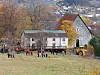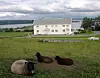 Det tok 10 timer å flytte trønderlåna. Det samlet mange skuelystne på Inderøya. (Foto: Husfrua)