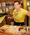 Astrid Aasen serverer smaksprøver i gårdsbutikken på Gangstad Gård. (Foto: Morten Holt)