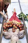 Heidi Jeanette Nygård dekorert med tomater, agurker og blomster. (Foto: Kristin Stokkeland)
