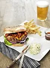 Burger & Fries - Black Angus-burger med nybakt, økologisk foccacia og en unik dressing som vi har klassifisert som ”top secret”! Tilvalg; ost, bacon, løkringer, jalapeños.