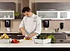 – Dispensere og avfallsdunker er strategisk plassert og alltid innen rekkevidde slik at kokkene ikke trenger løpe vekk fra stasjonen sin for å finne papir eller såpe, sier Stene.