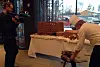 André Klokkervold Søtvik blir filmet av NRK i forbindelse med avdukingen av pepperkakehotellet. (Foto: Rica Elgstua)