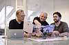 Jan Nilsen (AD/designer) (fra venstre), Eirik Nilsen (AD/kreativ leder) og Anfinn Lindestad (designer) i de lyse og romslige lokalene i sentrum av Tønsberg.