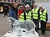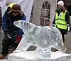 Sverre Hoel lager skulptur av isbjørn i is i Oslo. (Foto: Coca Cola Norge)